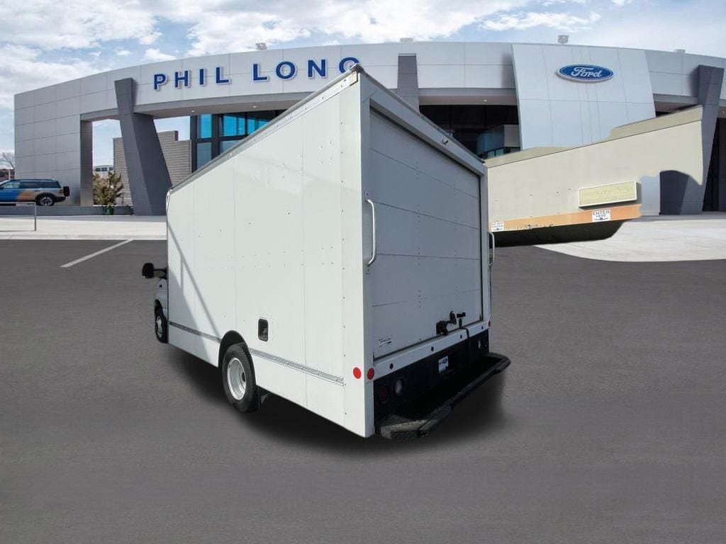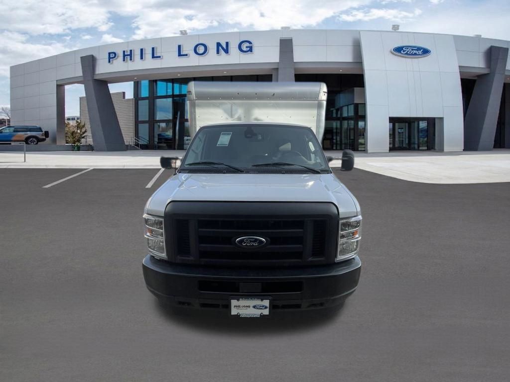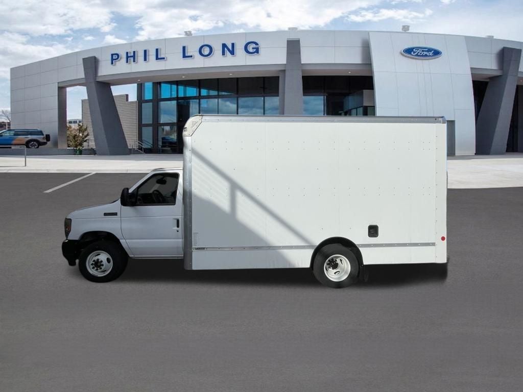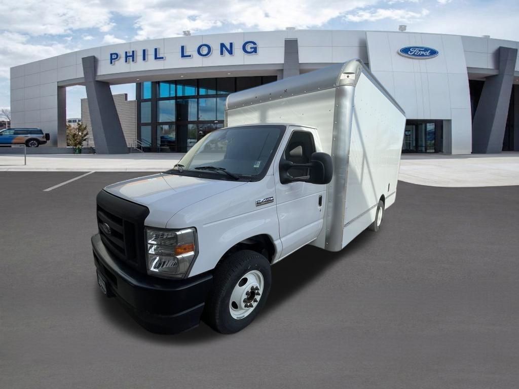 Oxford White 2024 Ford E-450SD DRW 14' Box Truck RWD 6-Speed Automatic with Overdrive 7.3L V8 7.3L V8, 6-Speed Automatic with Overdrive, RWD, Oxford White, Medium Flint w/Cloth Bucket Seats.