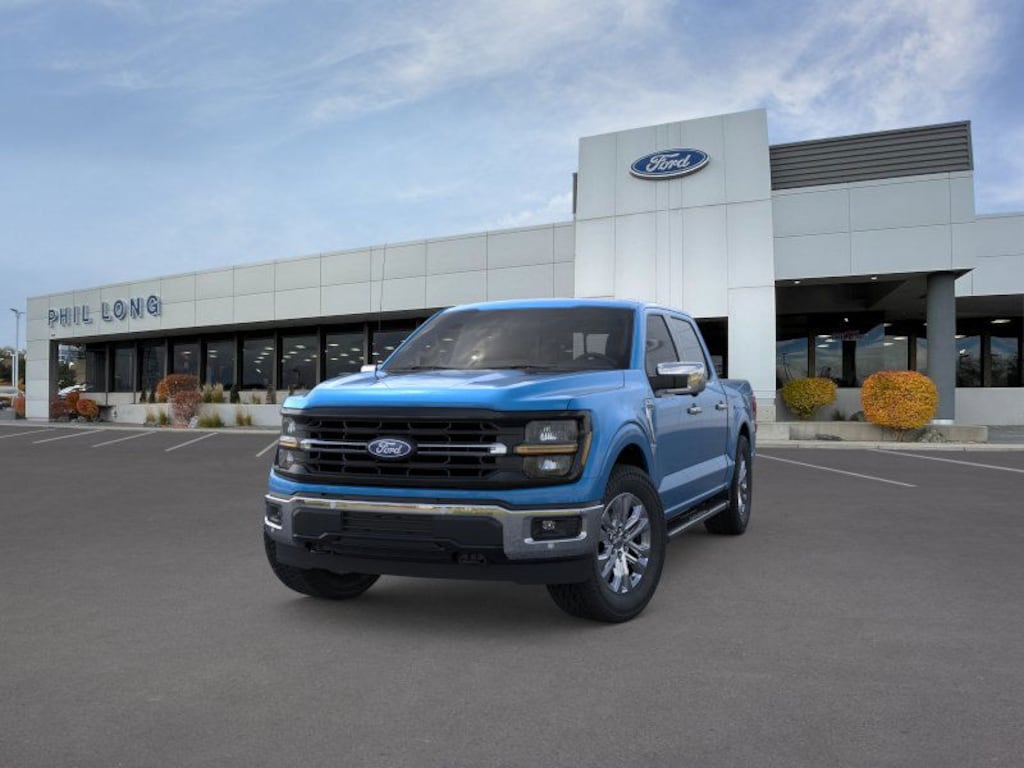 EQUIPMENT GROUP 303A HIGH Chrome Door & Tailgate Handles, Power-Adjustable Pedals, Wrapped Steering Wheel, Connected Navigation, 1-year trial, Navigation services require SYNC4 and FordPass Connect (optional on select vehicles), complimentary connect service and the FordPass app (see FordPass terms for details), Eligible vehicles receive a complimentary 1-year trial of navigation services that begins on the new vehicle warranty start date, Customers must unlock the navigation service trial by activating the eligible vehicle w/a FordPass member account, If not subscribed by the end of the complimentary period, the connected navigation service will revert to a moving-map and active routing will no longer be available, Connected service and features depend on compatible AT&T network, ENGINE: 5.0L V8 auto start-stop technology, 3.31 Axle Ratio, GVWR: 7,100 lbs Payload Package, TWIN PANEL MOONROOF, BED UTILITY PACKAGE Tailgate Step w/Tailgate Work Surface, LED Box Lighting, 4 Pickup Box Tie-Down Plates, MAX TOW ELECTRONIC LOCKING W/3.73 AXLE RATIO, TRAY STYLE FLOOR LINER W/CARPET MATS, TRANSMISSION: ELECTRONIC 10-SPEED AUTOMATIC SelectShift w/progressive range select and selectable drive modes: normal, ECO, sport, tow/haul, slippery, deep snow/sand and mud/rut (STD). Ford XLT with Atlas Blue exterior and Medium Dark Slate interior features a 8 Cylinder Engine with 325 HP at 5000 RPM*.