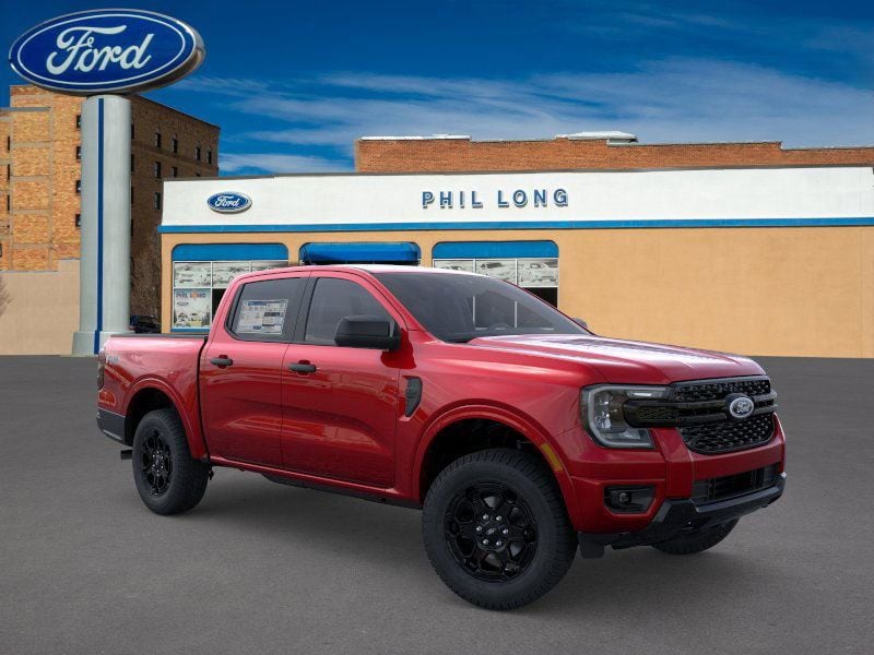FX4 OFF-ROAD PACKAGE FX4 Selectable Drive Modes, mud/ruts and sand, Exposed Steel Bash Plate, engine and transfer case shield and fuel tank guard, Electronic-Locking Rear Differential, Off-Road Tuned Shocks, Off-Road Screen in Center Stack, Trail Control, FX4 Off-Road Box Decal, BLACK APPEARANCE PACKAGE Black Center Bar & Surround Grille, Unique Carpet Mats, Wheels: 18 Black Painted, Tires: 18, Body-Color Painted Front Fascia, black lower valance, Front & Rear Black Ford Ovals, Black Rear Bumper, Painted Body-Color Wheel Lip Molding, TRAILER TOW PACKAGE towing capability up to TBD lbs and 4-pin/7-pin wiring harness, Class IV Trailer Hitch Receiver, TRANSMISSION: ELECTRONIC 10-SPEED AUTOMATIC selectable drive modes: normal, ECO, sport, tow/haul and slippery (STD). Ford XLT with Ruby Red Metallic Tinted Clearcoat exterior and Ebony interior features a 4 Cylinder Engine with 270 HP at 5500 RPM*.
