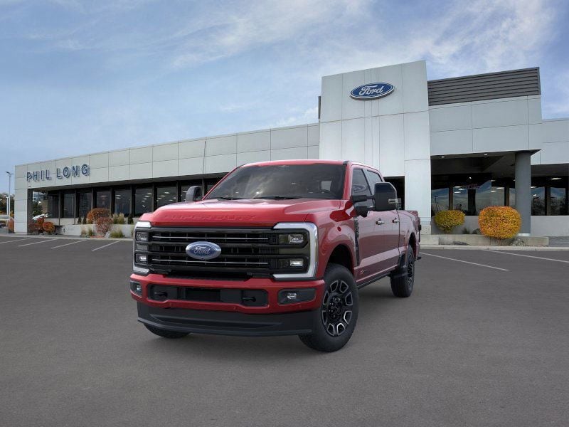ENGINE: 6.7L HIGH OUTPUT POWER STROKE V8 DIESEL Turbo diesel B20, manual push-button engine-exhaust braking and Operator Commanded Regeneration (OCR), 250 Amp Alternator, 34 Gallon Fuel Tank, GVWR: 12,000 lb Payload Package, 3.31 Axle Ratio, Dual 68 AH AGM 750 CCA Batteries, TWIN PANEL POWER MOONROOF map lights and moonroof switches, TOUGH BED SPRAY-IN BEDLINER tailgate-guard, black box bed tie-down hooks and black bed attachment bolts, SECURICODE KEYLESS ENTRY KEYPAD (DRIVERS SIDE) Integrated into the B-pillar, ELECTRONIC-LOCKING W/3.55 AXLE RATIO, TRANSMISSION: TORQSHIFT 10-SPEED AUTOMATIC SelectShift and selectable drive modes: normal, eco, slippery roads, tow/haul and off-road (STD). Ford Platinum with Ruby Red Metallic Tinted Clearcoat exterior and Black Onyx interior features a 8 Cylinder Engine with 500 HP at 2600 RPM*.