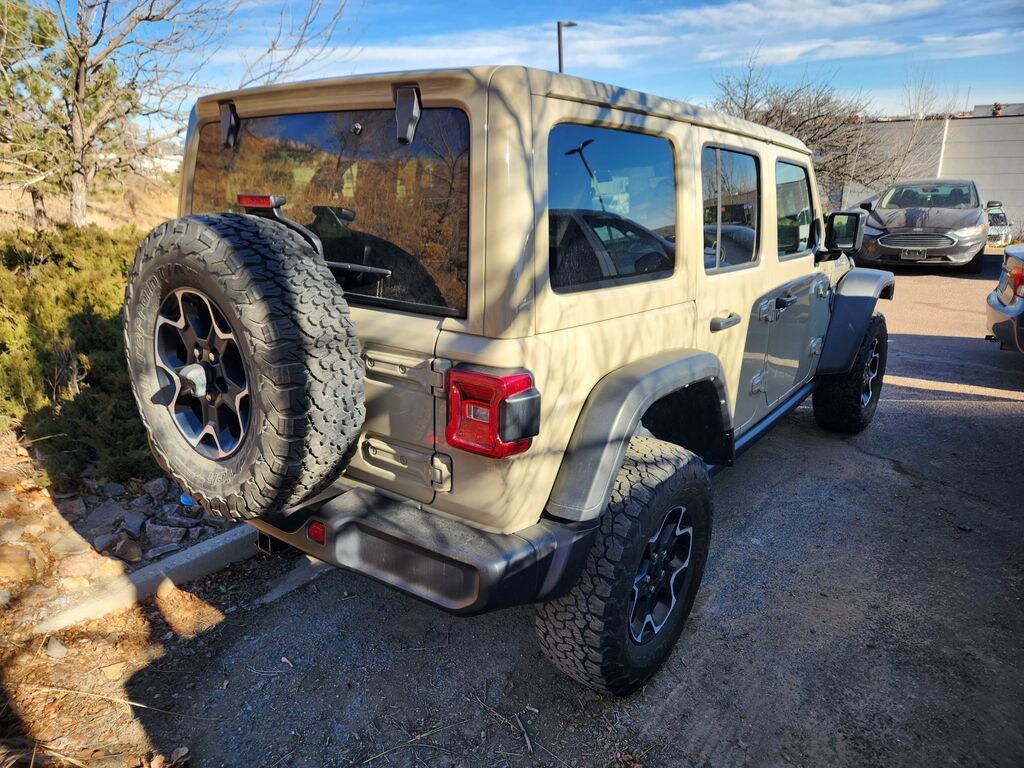 BODY COLOR 3-PIECE HARD TOP Freedom Panel Storage Bag, Rear Window Defroster, Rear Window Wiper/Washer, BLACK, LEATHER TRIMMED BUCKET SEATS Premium Wrapped I/P Bezels, Leather Wrapped Shift Knob, Premium Door Trim Panel, COLD WEATHER GROUP Heated Steering Wheel, Remote Start System, Heated Front Seats, TRAILER TOW & HD ELECTRICAL GROUP Class II Receiver Hitch, 700 Amp Maintenance Free Battery, 7 & 4 Pin Wiring Harness, Auxiliary Switches, TRANSMISSION: 8-SPEED AUTO 8P75PH PHEV (STD), ENGINE: 2.0L I4 DOHC DI TURBO PHEV (STD). Jeep Unlimited Rubicon with Limited Edition Gobi Clearcoat exterior and Black interior features a 4 Cylinder Engine with 375 HP at 5250 RPM*.