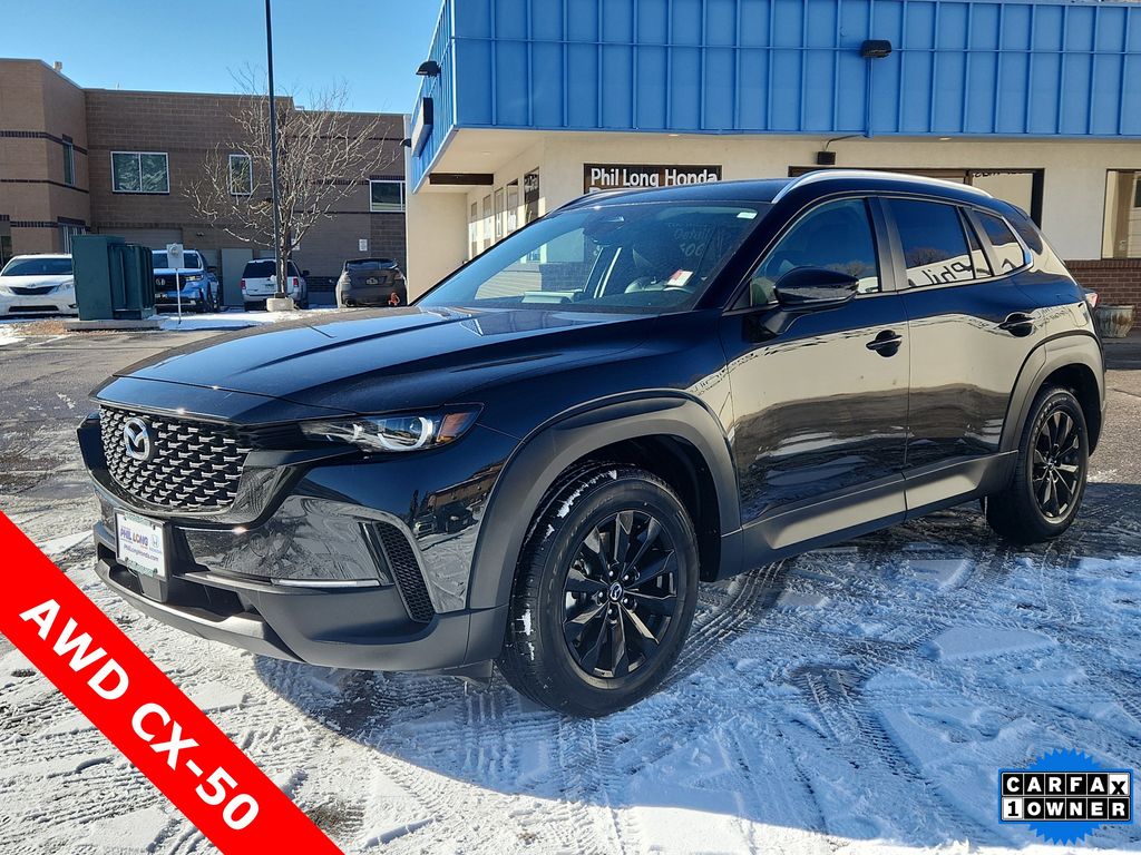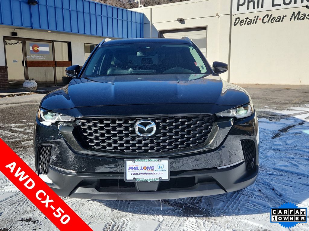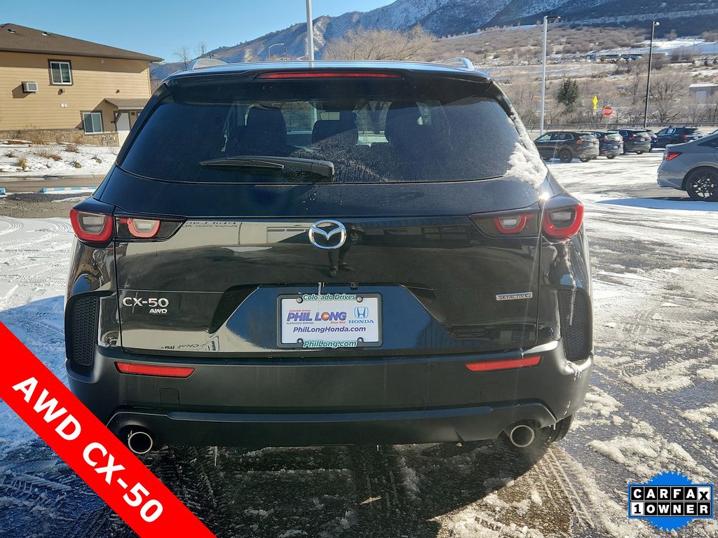 All Wheel Drive, Power Liftgate, Heated Driver Seat, Back-Up Camera, iPod/MP3 Input, Onboard Communications System, Aluminum Wheels, Keyless Start, Dual Zone A/C, Brake Actuated Limited Slip Differential, Smart Device Integration, Cross-Traffic Alert, Blind Spot Monitor, WiFi Hotspot, Lane Keeping Assist Mazda CX-50 2.5 S Preferred Package with Jet Black Mica exterior and Black w/Gray interior features a 4 Cylinder Engine with 187 HP at 6000 RPM*. Rear Spoiler, MP3 Player, Keyless Entry, Remote Trunk Release, Privacy Glass.